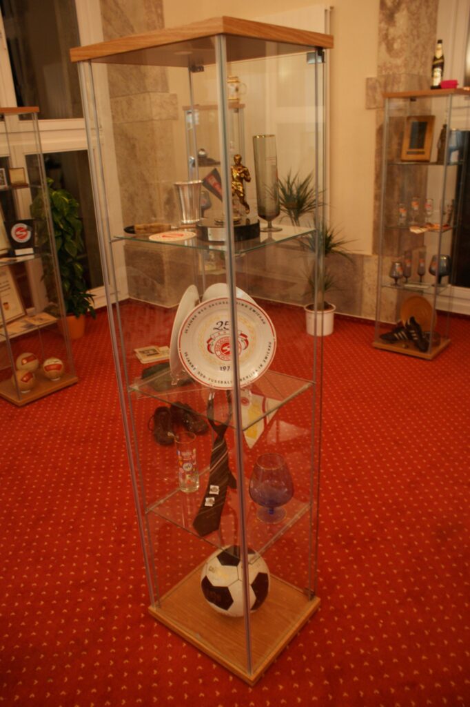 Den Nachholer wollte gerade ein Drittel dessen sehen: nur 446 Zuschauer inklusive 70 Gästen und damit Negativrekord dieser Saison. Nachdem beide Kurven die 1. Halbzeit noch getrennt standen, tranken und sangen sie nach der Pause gemeinsam im Gästeblock. Red Kaos resümierte damals «Das Zaunfahnenduell am heutigen Tag ging übrigens mit 21 zu 17 an UD und Vecchio Kaos ist doof.» Das Vereinsmuseum wurde natürlich nicht sofort wieder abgebaut und wir können euch noch einige Bilder der Ausstellung zeigen. Erkennt ihr etwas wieder? Was würdet ihr gern nochmals ausgestellt sehen?(Fotos: Red Kaos)
