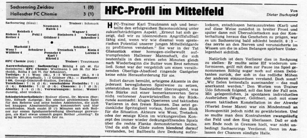Als sich die nur 2.600 Zuschauer nach dem Schlusspfiff vom Georgi-Dimitroff-Stadion in Richtung eigene vier Wände aufmachten, war es sicherlich für viele fast unvorstellbar, dass in den nächsten Jahren Fussball in Zwickau maximal zweitklassig, eher meist noch mindestens eine Liga tiefer gespielt wird. Es bleibt somit das bis heute letzte Spiel in der obersten Spielklasse.