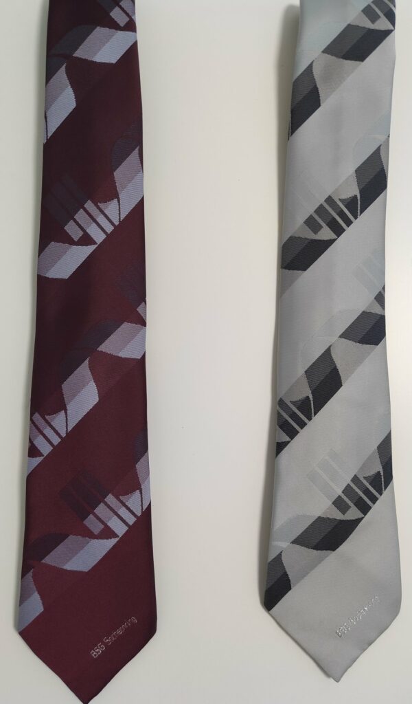 Die silbergraue Krawatte konnten wir käuflich erwerben, der Vorbesitzer möchte allerdings Unbenannt bleiben. Die weinrote Krawatte erhielten wir per Leihvertrag von Ronny Hüdel. Sein Großvater erhielt diese bei einer Feierlichkeit als Dank von einem Spieler für die Unterhaltung eines Abends als Musiker.