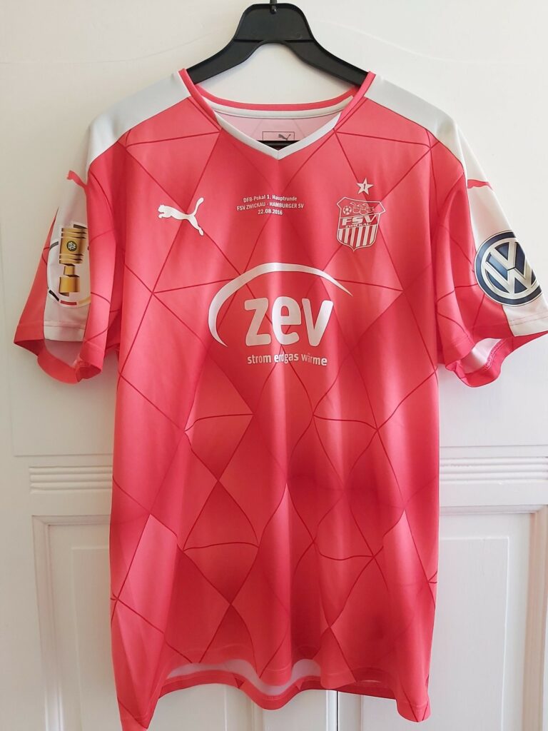 Nein, nicht enden. Danach soll es erst richtig losgehen. Das führt uns zu unserem heutigen Trikot, ein Pokalsondertrikot. Extra für die 1. Hauptrunde im DFB-Pokal 2016/17 gegen den Hamburger SV angefertigt, darf es in unserer Sammlung natürlich nicht fehlen.