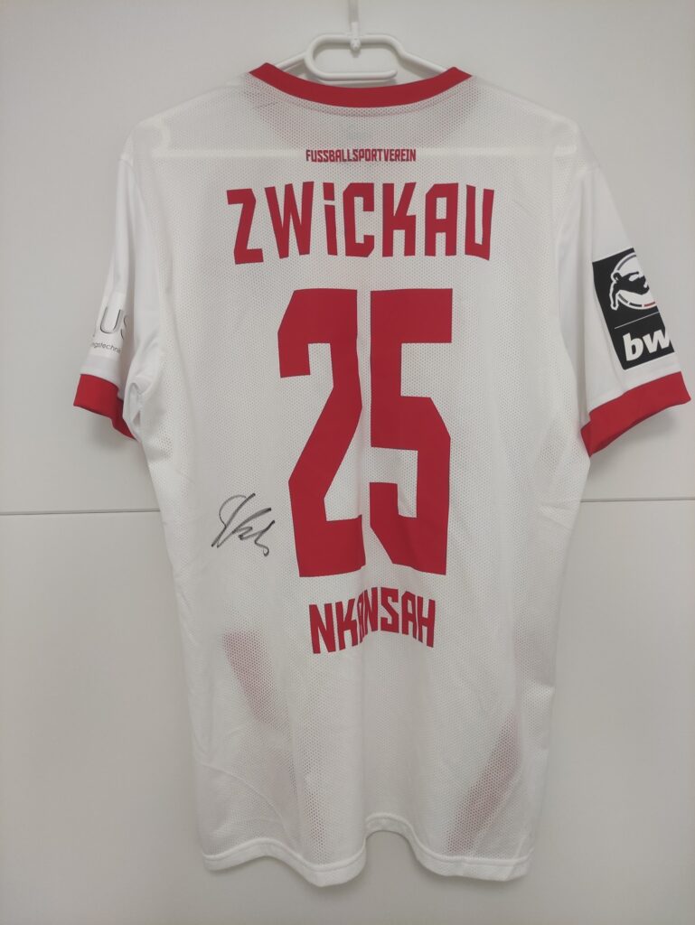 Im Anschluss dieser Partie stellte der FSV die getragenen Trikots in einer Auktion zur Verfügung. Wir als Zwickauer Fußballgeschichten e.V. konnten dabei die Trikots des Kopfballungeheuers sowie des Siegtorschützen ersteigern.