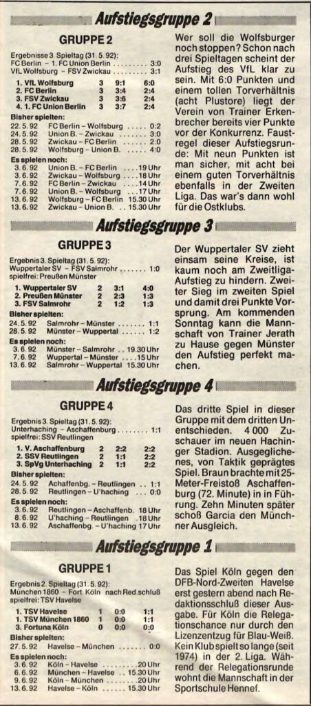 Vor 30 Jahren war es soweit, erstes Pflichtauswärtsspiel in den alten Bundesländern. Und dann gleich ein extrem wichtiges. Im ersten Spiel in der Aufstiegsrunde setzte es zunächst eine Auswärtsniederlage bei Union Berlin, danach gab es einem Heimsieg gegen den FC Berlin. Nun folgte das fast schon vorentscheidende Spiel beim bisher verlustpunktfreien VfL Wolfsburg. Wenn der FSV weiterhin einen möglichen Aufstieg anvisieren wollte, musste in Wolfsburg gepunktet werden.